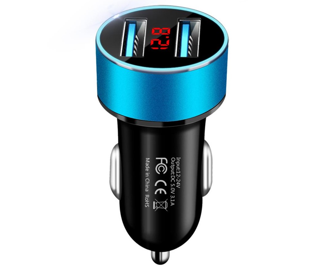 Cigarstik Lader, Quick. 2 USB, 12-24V. M/Led Blå