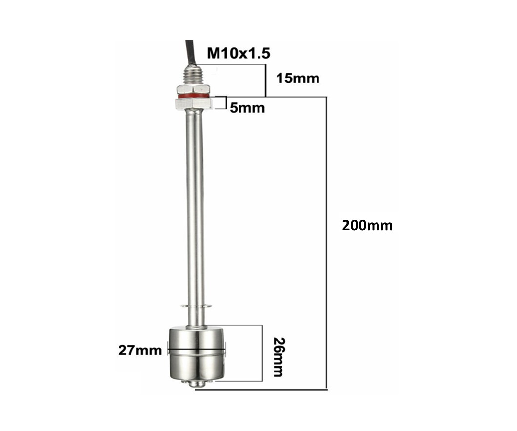 Denne svømmerafbryder er en enhed, der bruges til at registrere væske niveauet i en tank, kontakten kan aktivere en pumpe, en indikator, en alarm eller en anden enhed.
