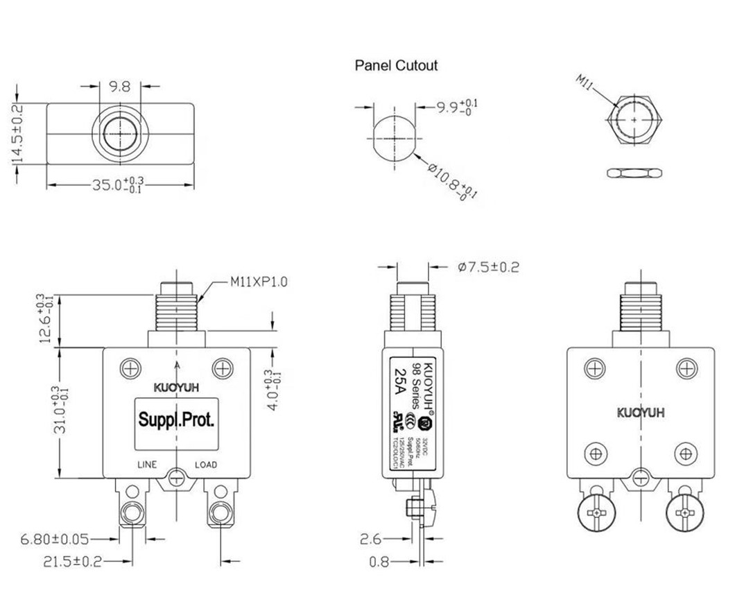 Interrupting Capacity : 125/250VAC x 1.000A(UL 1077)