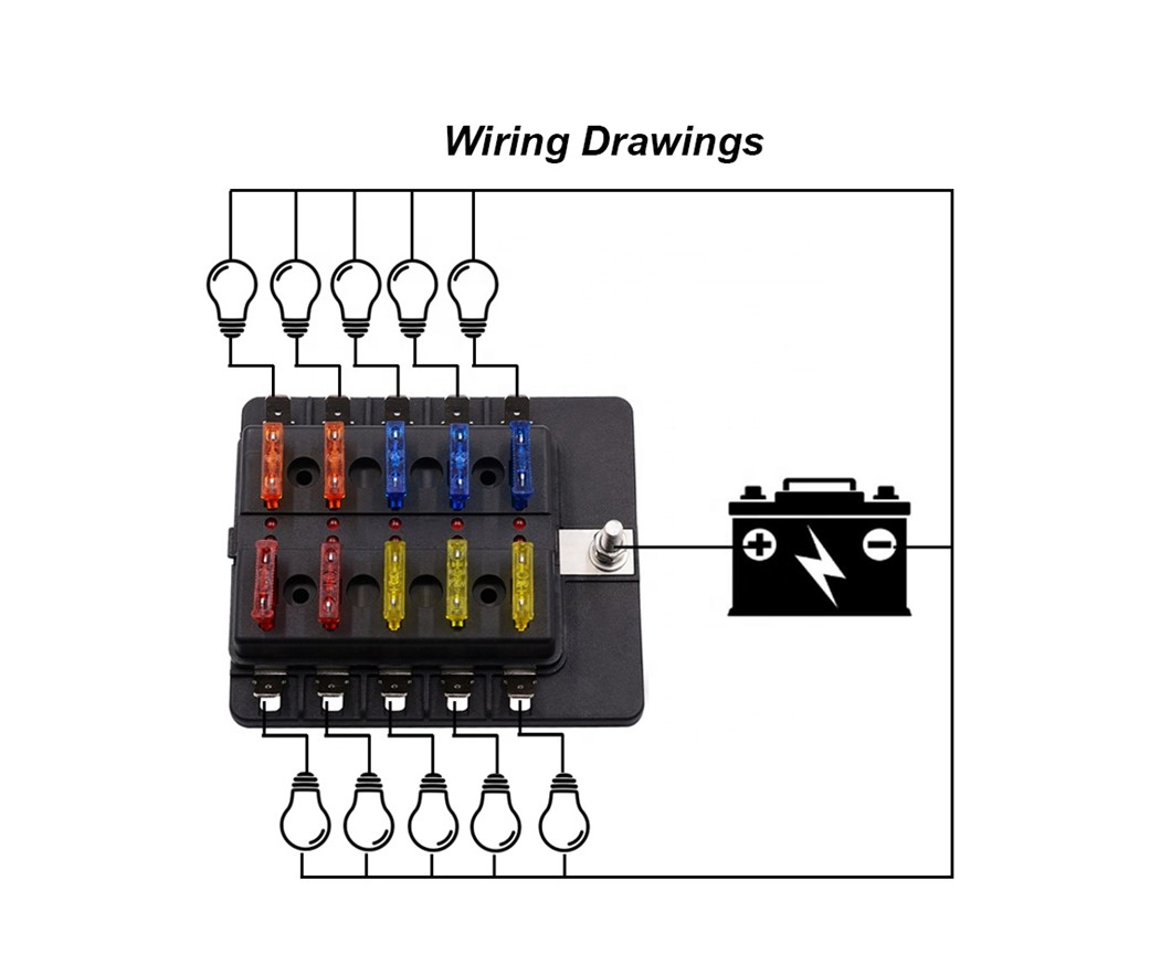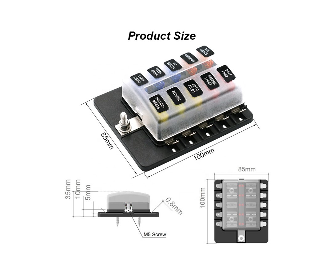 Rustfrit sikrings boks, med skrueterminaler for bedre forbindelse.