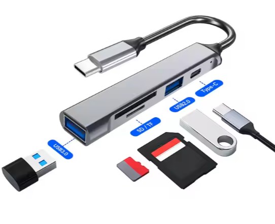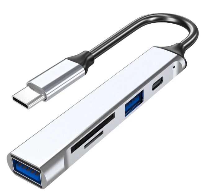5 i 1 USB C til SD/TF-kortlæser/USB A  Grå