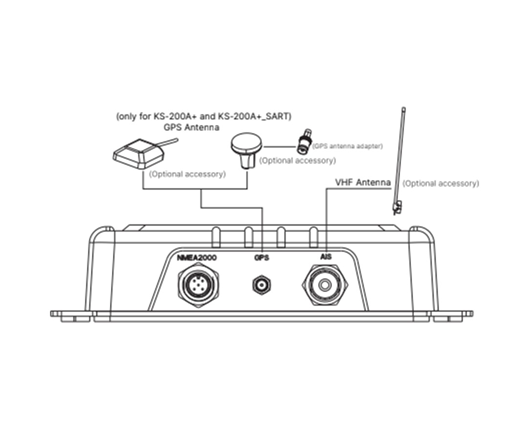 7. Ekstern GPS-antenne påkrævet: For at modtage nøjagtige GPS-signaler kræver KS-200A+ en ekstern GPS-antenne. Dette sikrer præcise positioneringsdata, hvilket er afgørende for sikker navigation og effektiv kommunikation mellem fartøjer.