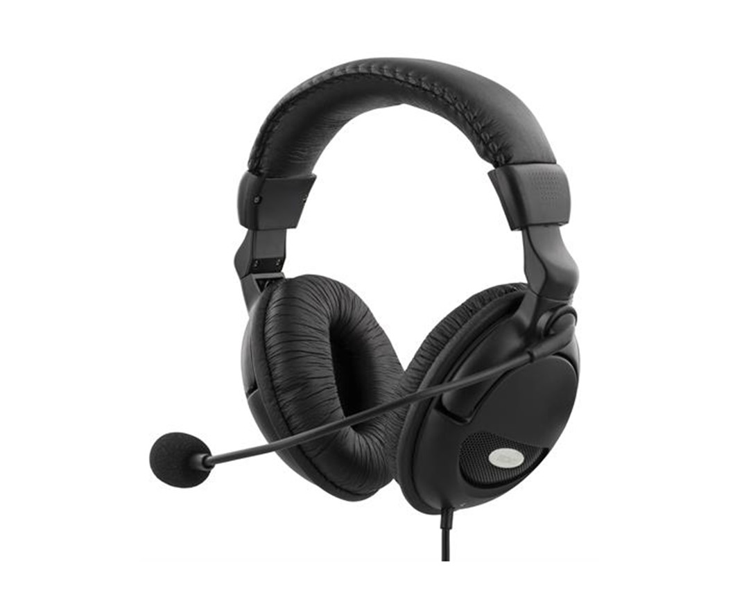 Bekvemt headset med robuste kopper som isolerer mod støjende lyd fra omgivelserne. Mikrofonen kan drejes så den ikke er i vejen når den ikke benyttes.