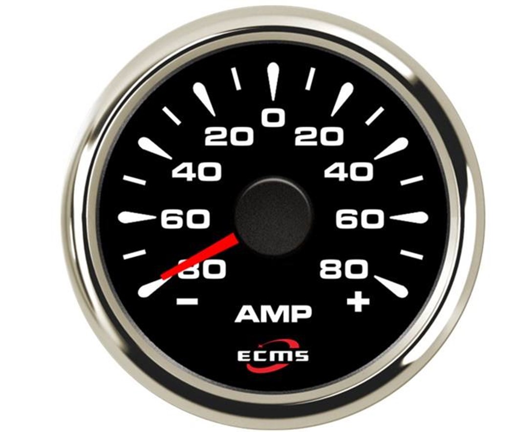 Amperemeter  - 80A,  9-32 V, 52 mm. Sort/Sølv  ECMS