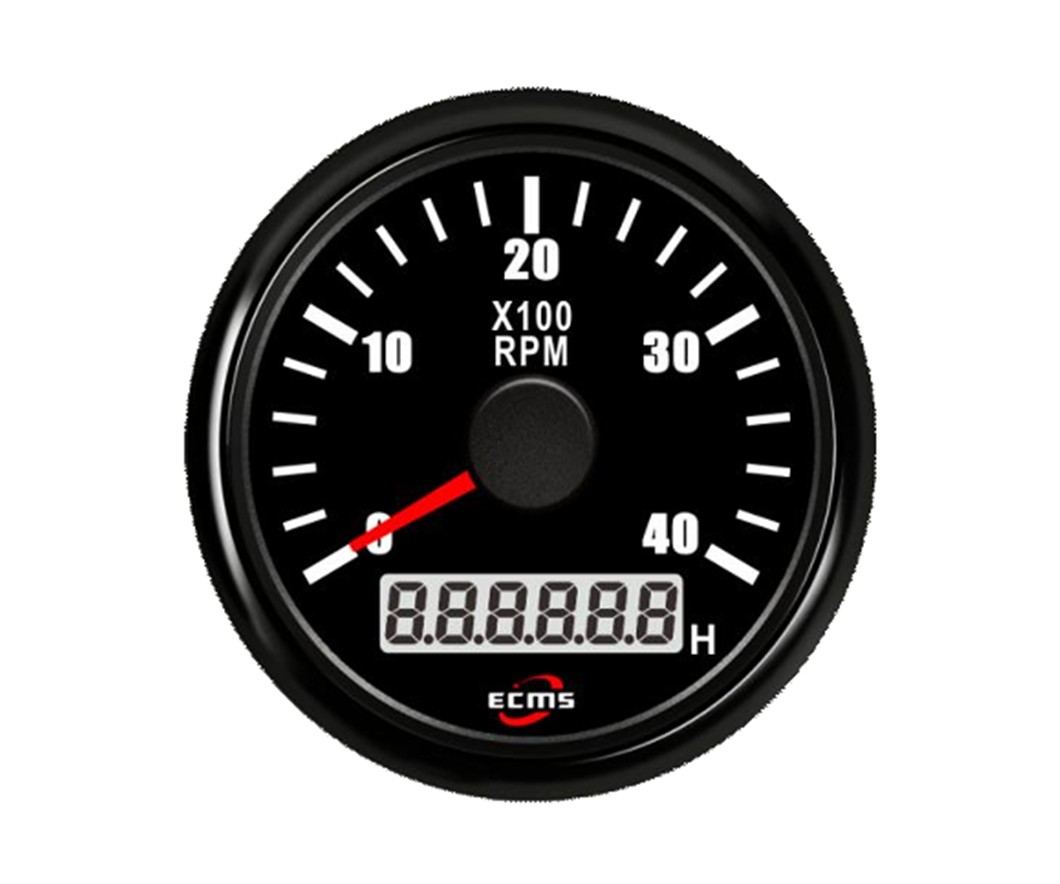 Omdrejningstæller 9-32V, 52 mm. 0-4000 Rpm. Hvidt/Sølv ECMS