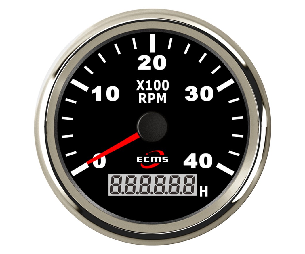 Omdrejningstæller 9-32V, 52 mm. 0-4000 Rpm Sort/Sølv  ECMS