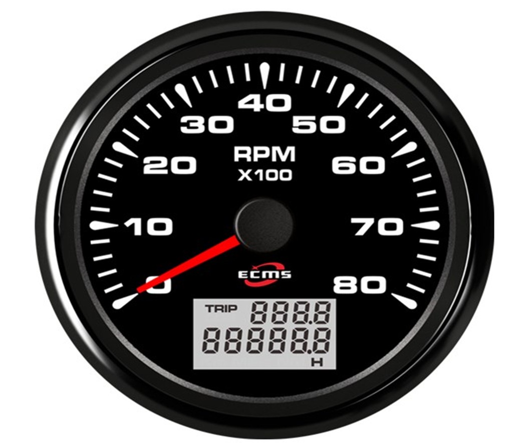 Omdrejningstæller 9-32V, 52 mm. 0-4000 Rpm. Sort/Sort ECMS
