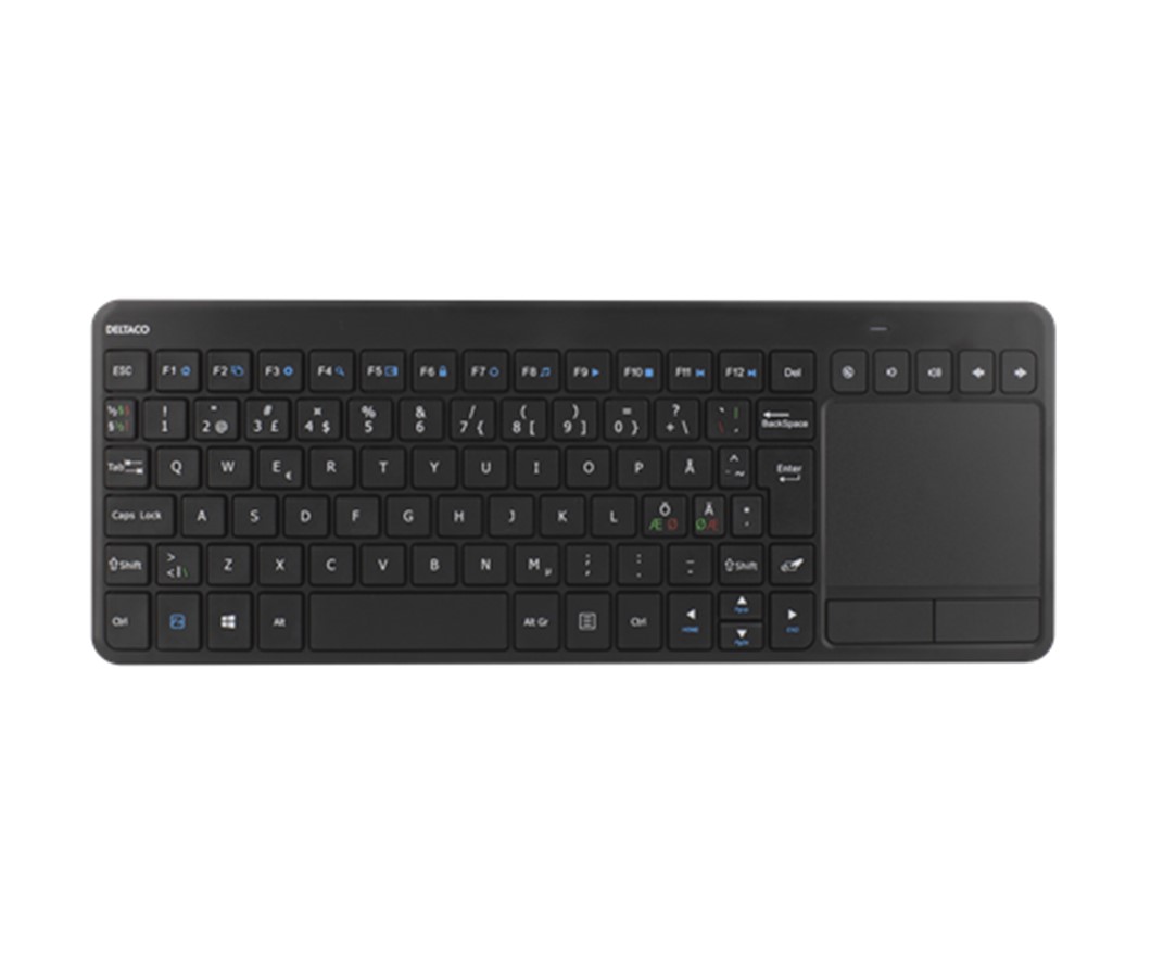 DELTACO Trådløst minitastatur med touchpad, membran, nordisk layout, USB nanomodtager, sort‎
