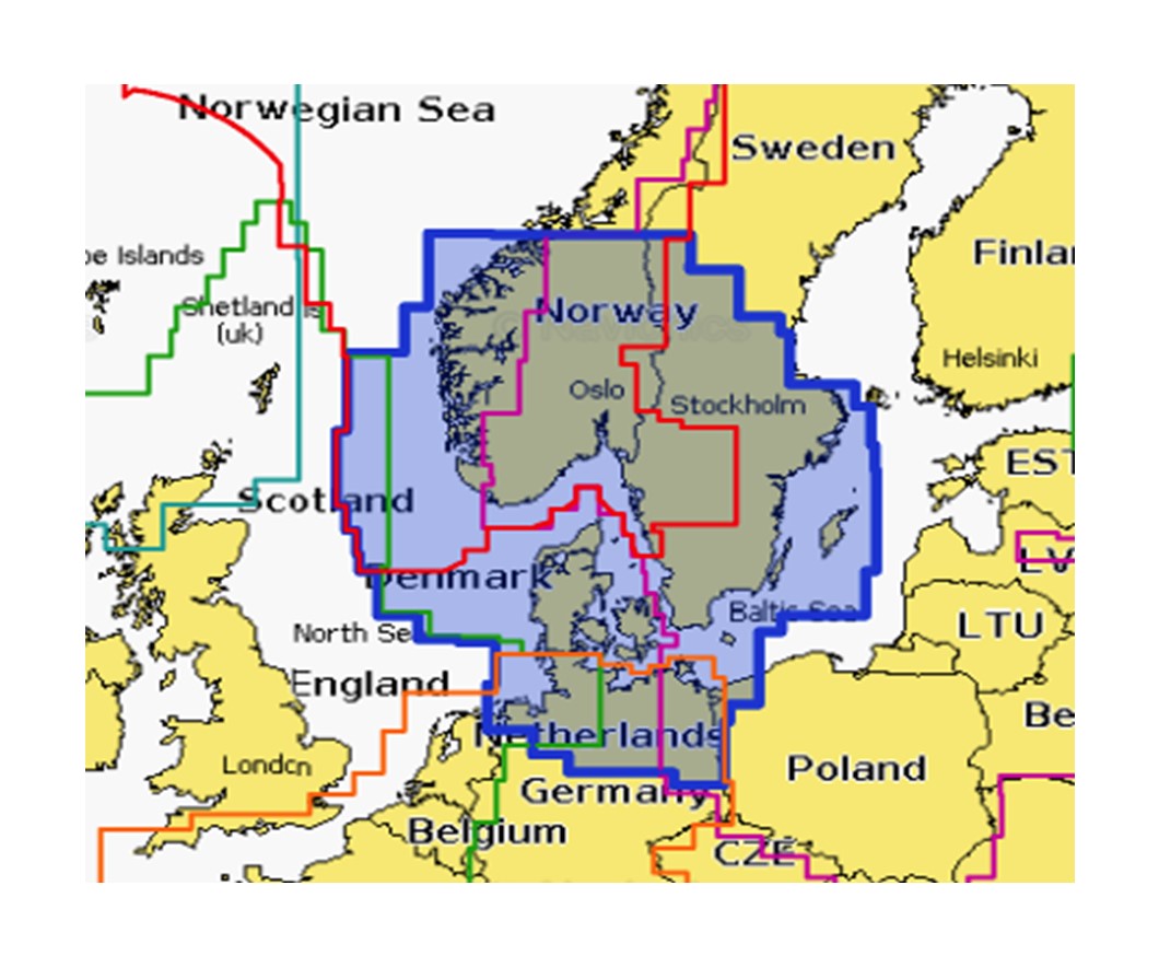 Navionics+ søkort dækker hele Danmark, syd Norge, syd Sverige og nord Tyskland.