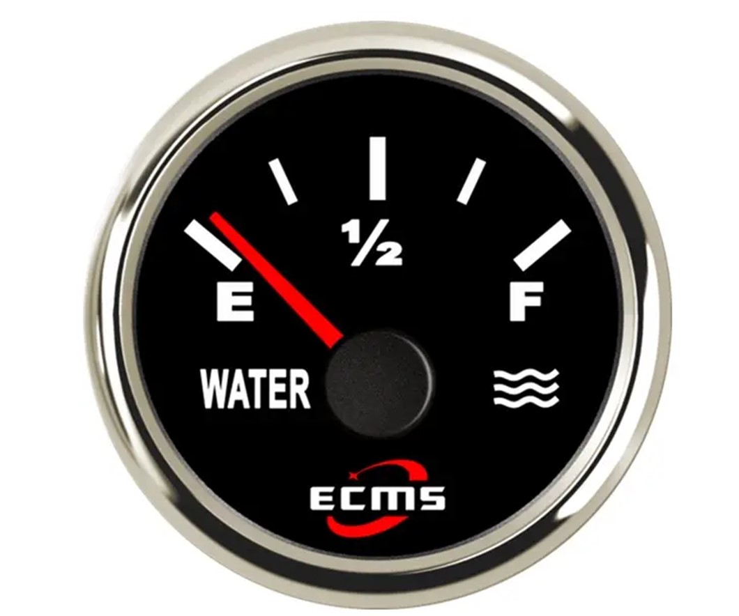 Vandtank måler, 9-32 V, 52 mm. Sort/Sølv ECMS