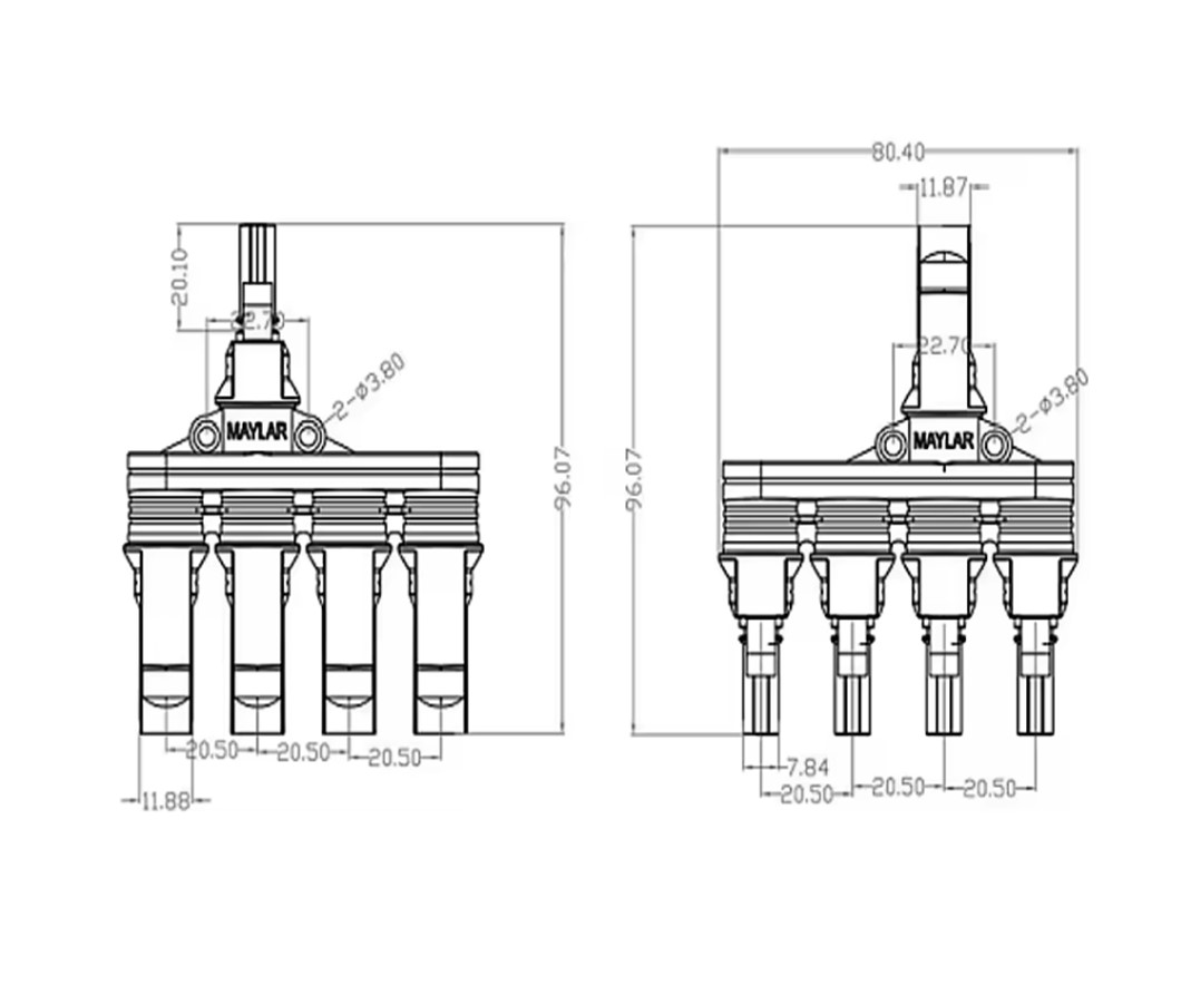 MC4 Solar adapter, 4 til 1 han/hun, vandtæt, IP68 30A