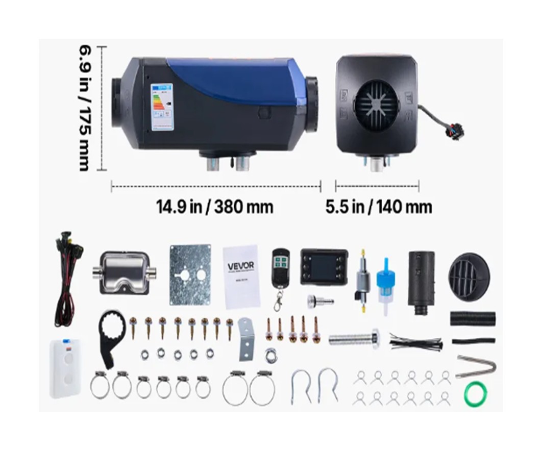 VEVOR dieselluftvarmeren er ideel til en solid og enkel transportabel varmeovn. Det er fantastisk til at holde varmen i din bil, båd eller hytte eller mens du camperer udenfor. Denne varmelegeme bruger dieselolie, som er let tilgængeligt. Der er ikke behov for nogen speciel opsætning til denne varmelegeme. Du skal blot pakke den ud, tilslutte den, og den vil straks give varme.